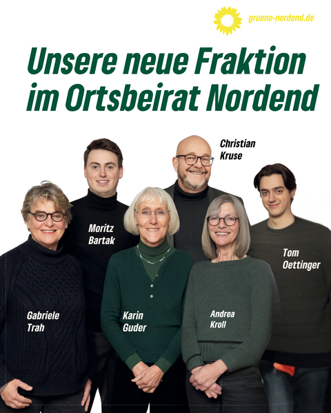 Die letzte Kommunalwahl in Frankfurt fand im März 2026 statt. Im Nordend hat Bündnis90/DIE GRÜNEN 31,9 % der Stimmen erreicht. Damit bilden wir zum wiederholten Male die stärkste Fraktion im Ortsbeirat unseres Stadtviertels.